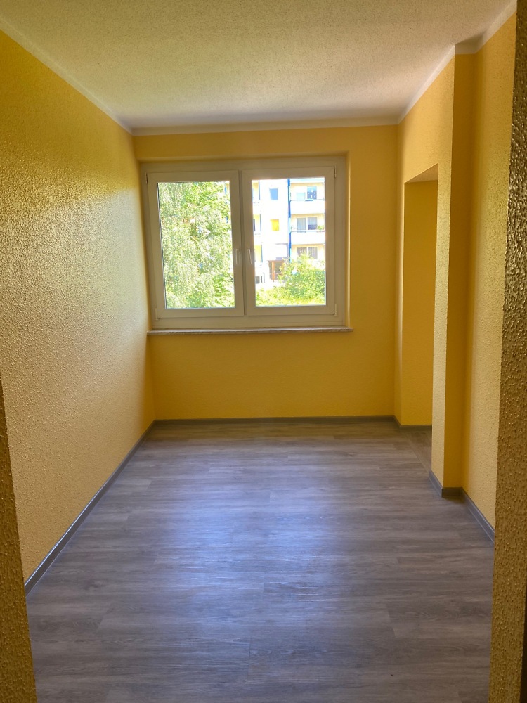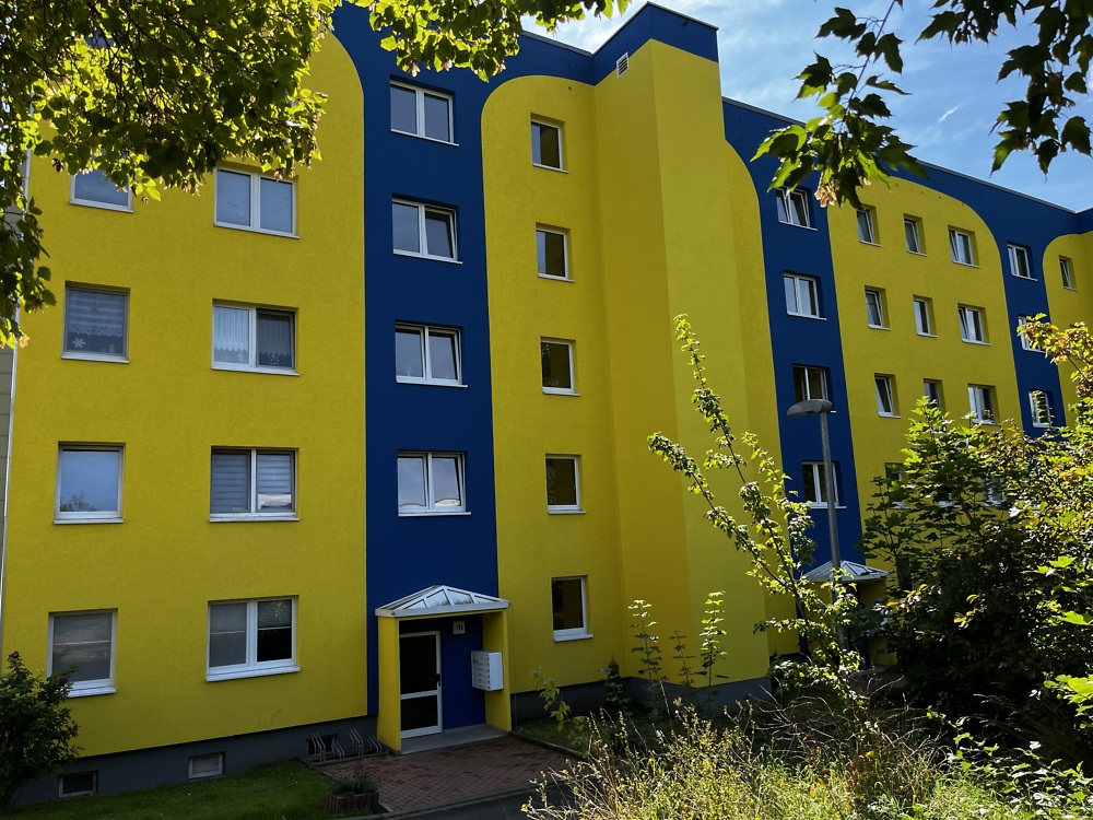 Endlich ist es soweit! Seit Frühjahr 2021 ziehen nach und nach Senioren und Familien in der Ernst-Thälmann-Straße 10 ein. In dem farbenfroh gestalteten sanierten Mehrfamilienhaus können sich die neuen Bewohner auf einen Fahrstuhl und bezahlbare barrierearme Wohnungen mit Glasfaseranschluss freuen. Die Domizile für Familien sind mit zwei Badezimmern - eines mit Wanne und eines mit ebenerdiger Dusche - ausgestattet und besitzen großzügige Abstellräume in den Wohnungen.